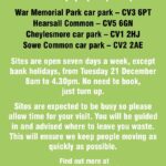 Sites will be open 7 days a week between 8am and 4.30pm from Tuesday 21 December – except bank holidays.